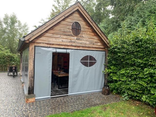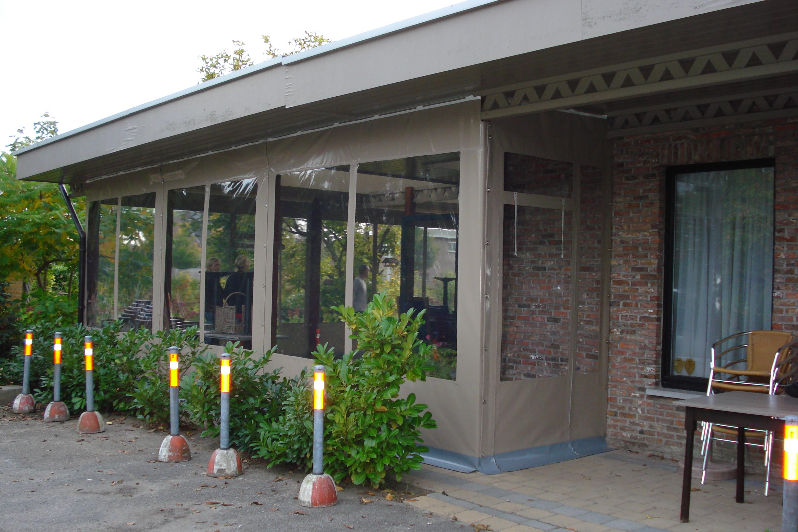 Onze zeilen worden vervaardigd uit sterk PVC-doek of transparant raamfolie, volledig op maat gemaakt en professioneel afgewerkt in onze eigen zeilmakerij.